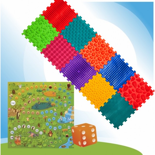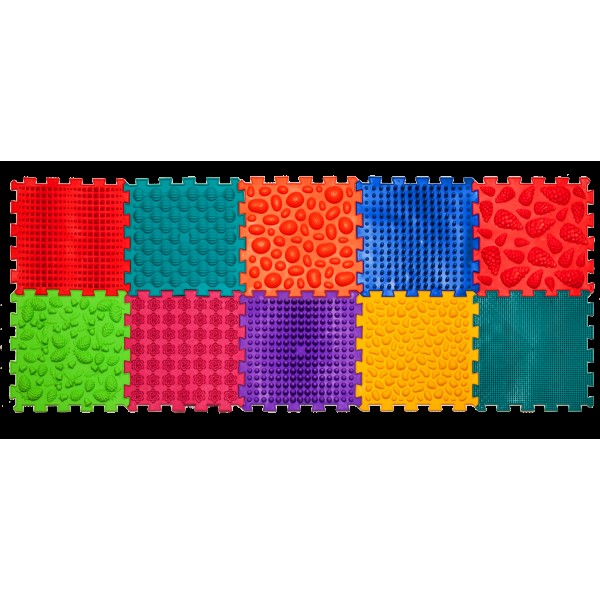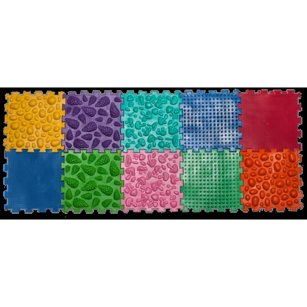 Усі пазли виробляються з одного матеріалу – безпечного, гіпоалергенного ПВХ без шкідливих домішок. Але завдяки різним текстурам відчуваються по-різному. Травка, мушлі, галька, гриби відносяться до більш м'яких пазлів. Вежі, Їжачки, Морські, Жолуді – до середніх. Піраміда, Шипи, Лотос, Шишки відносяться до більш твердих пазлів. Вплив поверхонь різної твердості надає найкращий ефект для масажу, тренування стоп та сенсорної інтеграції.