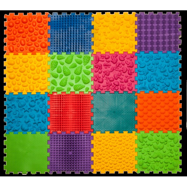 Усі пазли виробляються з одного матеріалу – безпечного, гіпоалергенного ПВХ без шкідливих домішок. Але завдяки різним текстурам відчуваються по-різному. Травка, мушлі, галька, гриби відносяться до більш м'яких пазлів. Вежі, Їжачки, Морські, Жолуді – до середніх. Піраміда, Шипи, Лотос, Шишки відносяться до більш твердих пазлів. Вплив поверхонь різної твердості надає найкращий ефект для масажу, тренування стоп та сенсорної інтеграції.