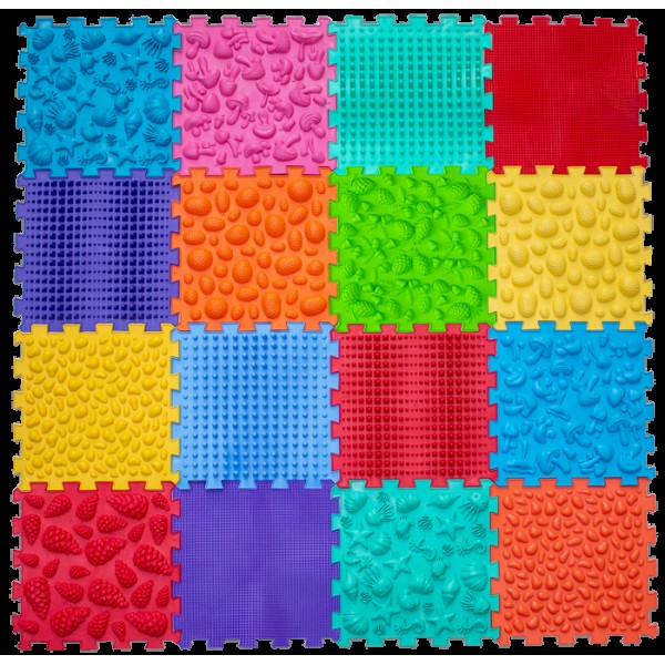 Усі пазли виробляються з одного матеріалу – безпечного, гіпоалергенного ПВХ без шкідливих домішок. Але завдяки різним текстурам відчуваються по-різному. Травка, мушлі, галька, гриби відносяться до більш м'яких пазлів. Вежі, Їжачки, Морські, Жолуді – до середніх. Піраміда, Шипи, Лотос, Шишки відносяться до більш твердих пазлів. Вплив поверхонь різної твердості надає найкращий ефект для масажу, тренування стоп та сенсорної інтеграції.