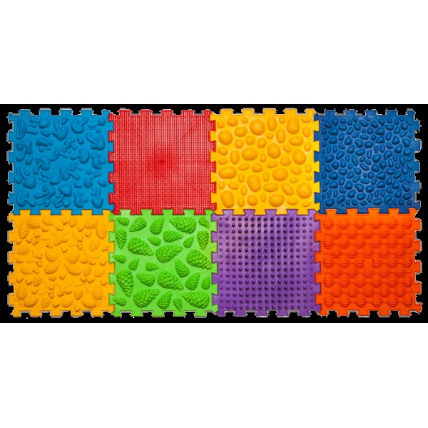Масажний килимок складається з 8 пазлів. Розмір модуля: 26*26 см.