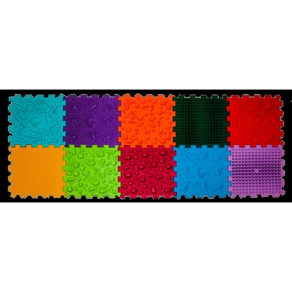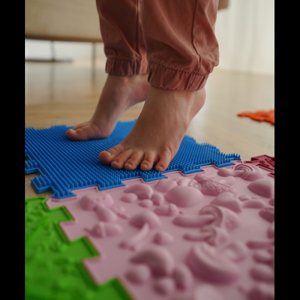 Усі пазли виробляються з одного матеріалу – безпечного, гіпоалергенного ПВХ без шкідливих домішок. Але завдяки різним текстурам відчуваються по-різному. Травка, мушлі, галька, гриби відносяться до більш м'яких пазлів. Вежі, Їжачки, Морські, Жолуді – до середніх. Піраміда, Шипи, Лотос, Шишки відносяться до більш твердих пазлів. Вплив поверхонь різної твердості надає найкращий ефект для масажу, тренування стоп та сенсорної інтеграції.