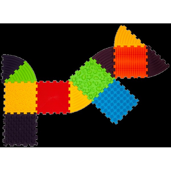 Набори із трикутними поворотними пазлами дозволяють створювати хвилясті доріжки, круги, візерунки, перетину. Таким чином ви зможете створювати маршрути навколо предметів меблів, кутів, економити місце в кімнаті, а головне – стимулювати фантазію та інтерес дітей до занять на килимках.