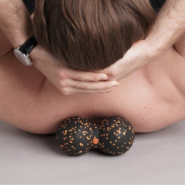 Ідеально підходить для самомасажу. Зручно користуватися стоячи або сидячи біля стіни. Потрібно просто розмістити м'яч між тілом і стіною і здійснювати рухи вгору-вниз або вправо-вліво, від кількох секунд до кількох хвилин, орієнтуючись на власні відчуття та цілі. Можна також впливати на потрібні ділянки тіла просто натисканням м'яча на кілька секунд.