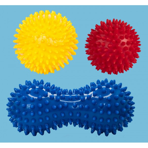 Набір м'ячів різного розміру, твердості та форми відмінно підійдуть для масажу різних частин тіла, для розвитку моторики та тактильних відчуттів, для сенсорної інтеграції.