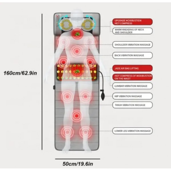 3. Багатофункціональність – завдяки 10 зонам вібрації по всій площі килимка та кільком режимам масажу забезпечується розслаблення всього тіла. Можна окремо вмикати зону ніг, стегон, спини, плечей тощо.