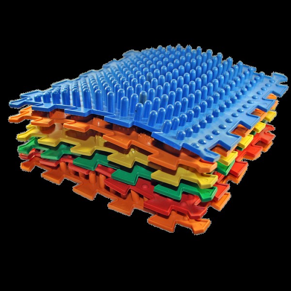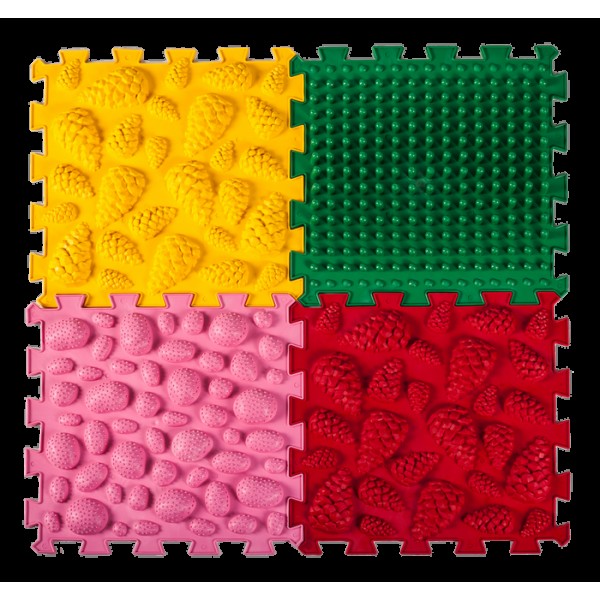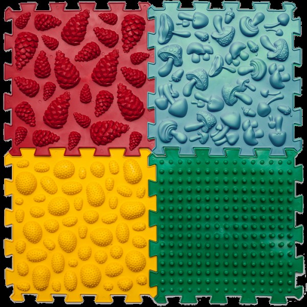 Усі пазли виробляються з одного матеріалу – безпечного, гіпоалергенного ПВХ без шкідливих домішок. Але завдяки різним текстурам відчуваються по-різному. Травка, мушлі, галька, гриби відносяться до більш м'яких пазлів. Вежі, Їжачки, Морські, Жолуді – до середніх. Піраміда, Шипи, Лотос, Шишки відносяться до більш твердих пазлів. Вплив поверхонь різної твердості надає найкращий ефект для масажу, тренування стоп та сенсорної інтеграції.