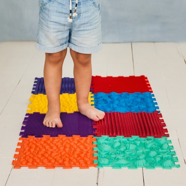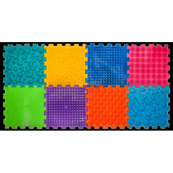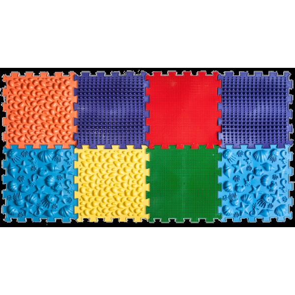 Усі пазли виробляються з одного матеріалу – безпечного, гіпоалергенного ПВХ без шкідливих домішок. Але завдяки різним текстурам відчуваються по-різному. Травка, мушлі, галька, гриби відносяться до більш м'яких пазлів. Вежі, Їжачки, Морські, Жолуді – до середніх. Піраміда, Шипи, Лотос, Шишки відносяться до більш твердих пазлів. Вплив поверхонь різної твердості надає найкращий ефект для масажу, тренування стоп та сенсорної інтеграції.