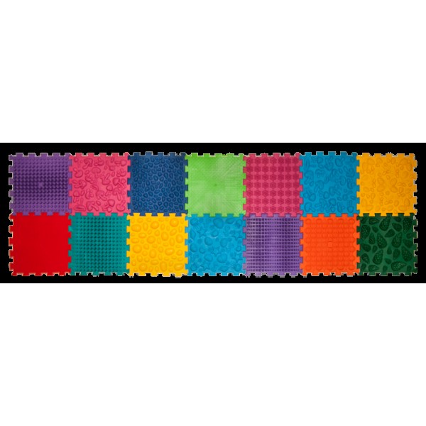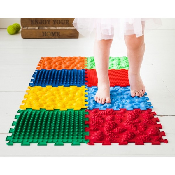 Усі пазли виробляються з одного матеріалу – безпечного, гіпоалергенного ПВХ без шкідливих домішок. Але завдяки різним текстурам відчуваються по-різному. Травка, мушлі, галька, гриби відносяться до більш м'яких пазлів. Вежі, Їжачки, Морські, Жолуді – до середніх. Піраміда, Шипи, Лотос, Шишки відносяться до більш твердих пазлів. Вплив поверхонь різної твердості надає найкращий ефект для масажу, тренування стоп та сенсорної інтеграції.