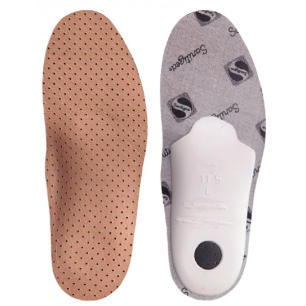Опис: профілактичні шкіряні устілки з пластиковим супінатором для підтримки поздовжнього склепіння та підйомом для профілактики поперечної плоскої стопи. Пластиковий каркас рівномірно розподіляє навантаження на стопу. Устілки зменшують втому й біль у ногах, викликану комбінованою плоскостопістю. Еластичний амортизатор під п'ятою призначений для зменшення ударного навантаження на п'яту, суглоби ніг і хребет при ходінні. Натуральна шкіра з перфорацією дозволяє стопі дихати та добре поглинає вологу. Антибактеріальна підкладка з активованим вугіллям запобігає розмноженню бактерій і грибків та забезпечує гігієну ніг.