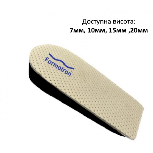 Formotron підп'ятник коригуючий, арт.829, розроблений з метою корекції нестачі довжини ніг та висоти п'яти. Цей продукт допомагає усунути непропорційне навантаження на тазові та спинні суглоби.