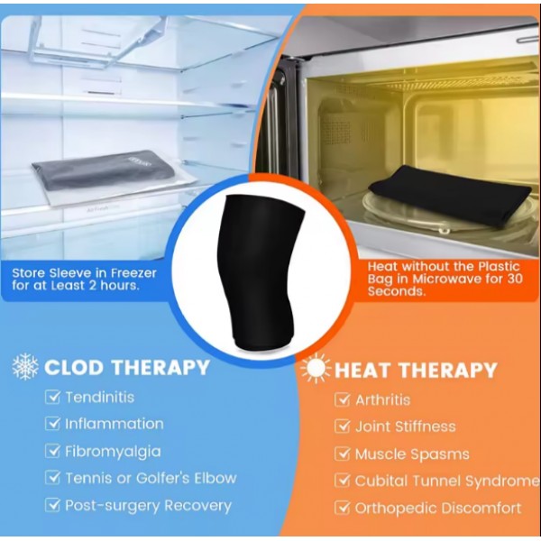 Терапевтичний бандаж для коліна призначений для гарячої чи холодної терапії. Усередині бандажа – спеціальний гель, що зберігає температуру. Ви можете охолодити виріб у холодильнику за кілька годин або нагріти в мікрохвильовій печі протягом 30 секунд, а потім надіти. Бандаж багаторазового використання.