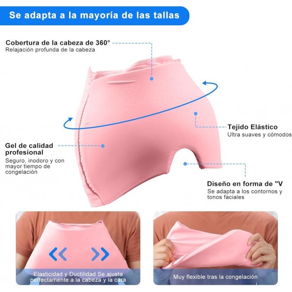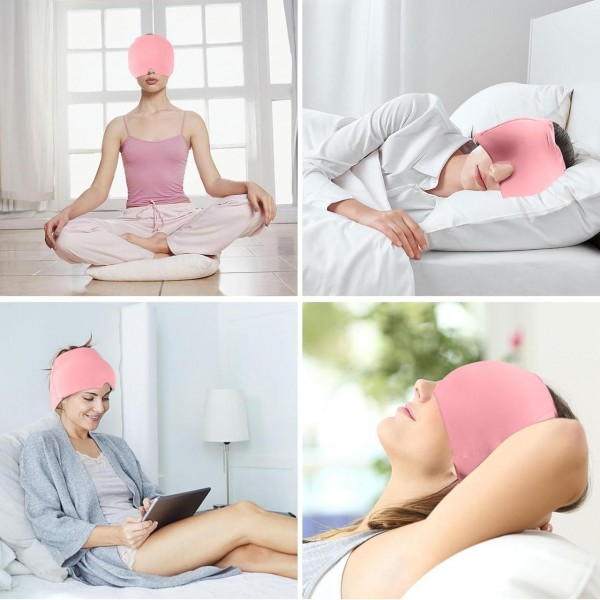 Ця маска-шапочка містить спеціальний гель, який зберігає температуру. Ви можете охолодити її в холодильнику або нагріти в мікрохвильовій печі протягом 30 секунд. Зручна у використанні, легко підлаштовується під форму вашої голови, забезпечуючи цілеспрямоване полегшення та приємну компресію. Підходить для використання як холодний і гарячий компрес, багаторазова і довговічна.