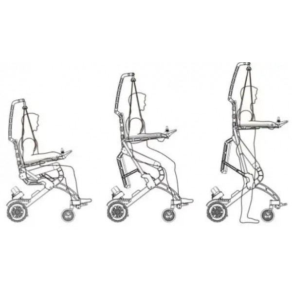 Це реабілітаційний пристрій поєднує функції інвалідного крісла з автоматичним керуванням, підйомного механізму та робота для тренування ходьби. Воно створене для полегшення та прискорення процесу відновлення людей, які потребують підтримки після травм чи хірургічного втручання. Це надійний і сучасний інструмент для фізіотерапії та реабілітації.