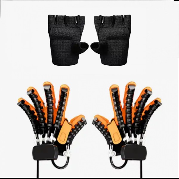 У комплект входить 2 основні помаранчеві рукавички (права та ліва) та 2 дзеркальні чорні рукавички (права та ліва). Підходить для підключення до системного блоку товару Робот тренажер для обох рук Подвійний Реабілітація руки. Не працюють самостійно без системного блоку.