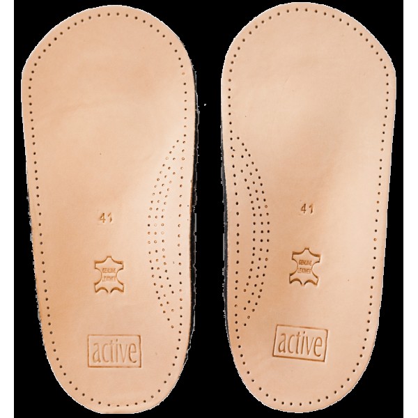 Каркасна напівустілка з натуральної шкіри також призначена для профілактики плоскостопості, вальгусної постановки стопи, приносить полегшення при шпорі п'яти.