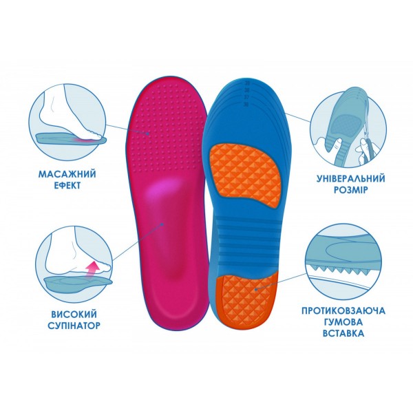- невеликі опуклості в передній частині устілок мають легкий масажний ефект;